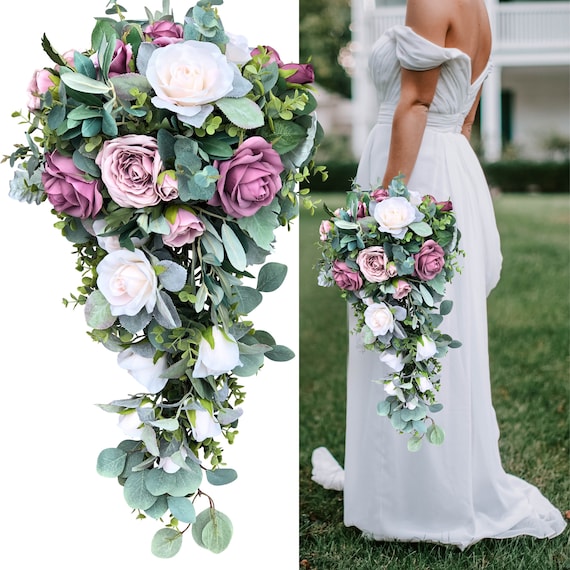 Cascade Bridal Bouquet In Dusty Rose Mauve With Sage Etsy Uk